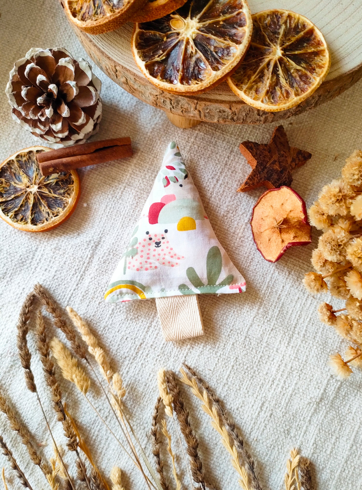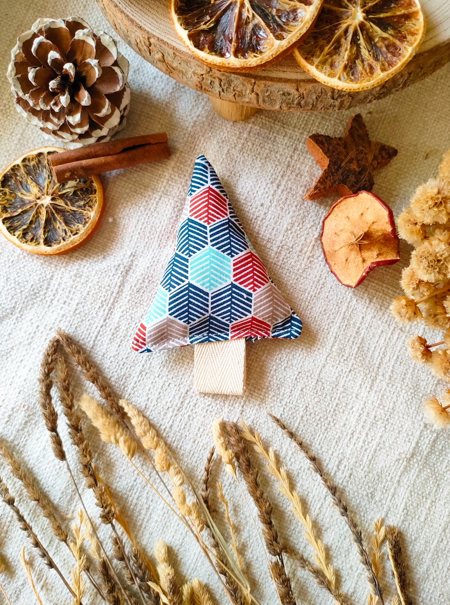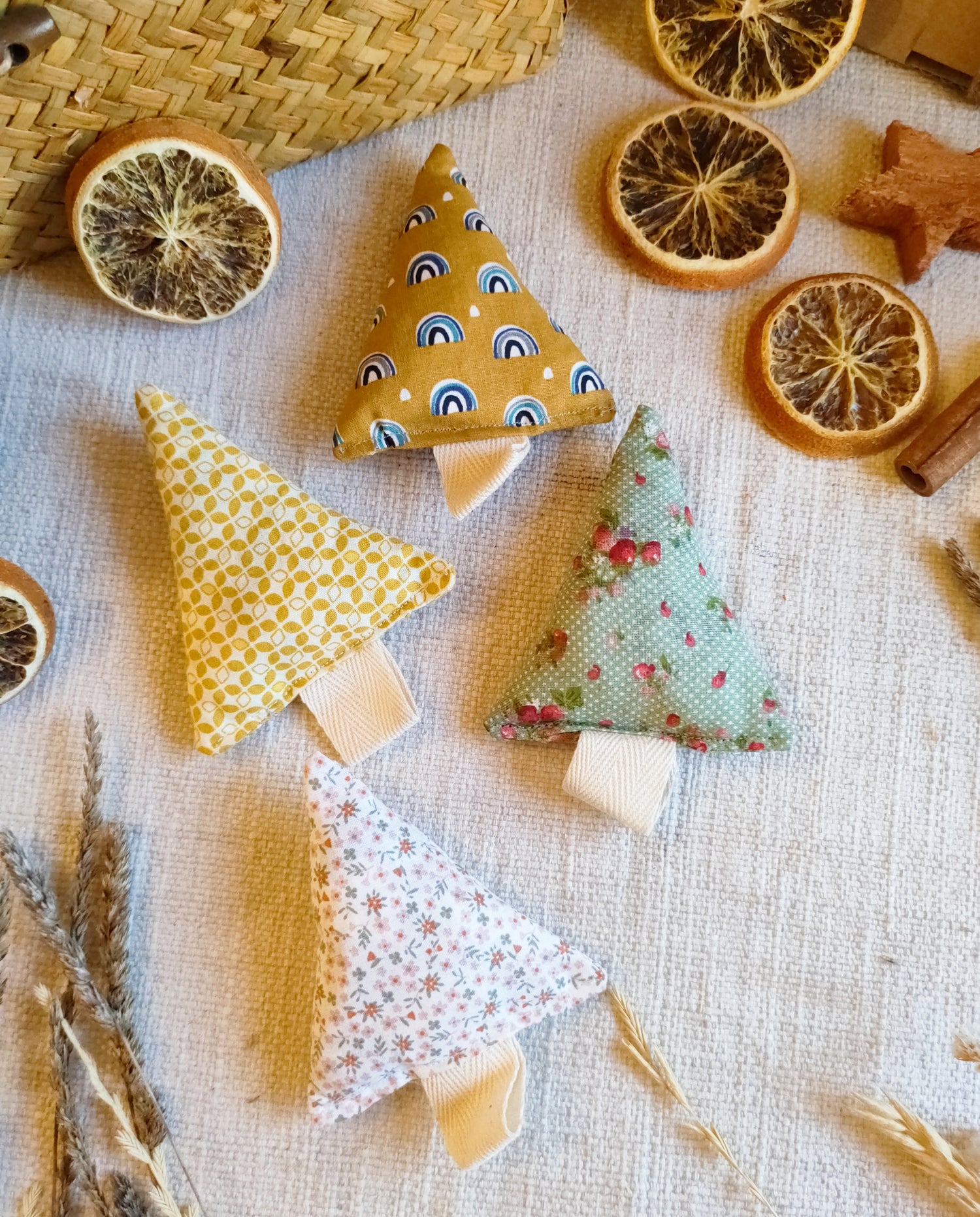 Delicati alberelli in tessuto, perfetti come segnaposto per abbellire la tavola a Natale. Questi graziosi alberelli, realizzati e imbottiti con morbido cotone, sono pensati per essere riutilizzati ogni anno dagli stessi membri della famiglia: questo non solo riduce gli sprechi ma crea anche un'usanza da passare alle generazioni future. Gli alberelli sono caratterizzati da tessuti divertenti e colorati aggiungendo un tocco di allegria all'atmosfera natalizia.