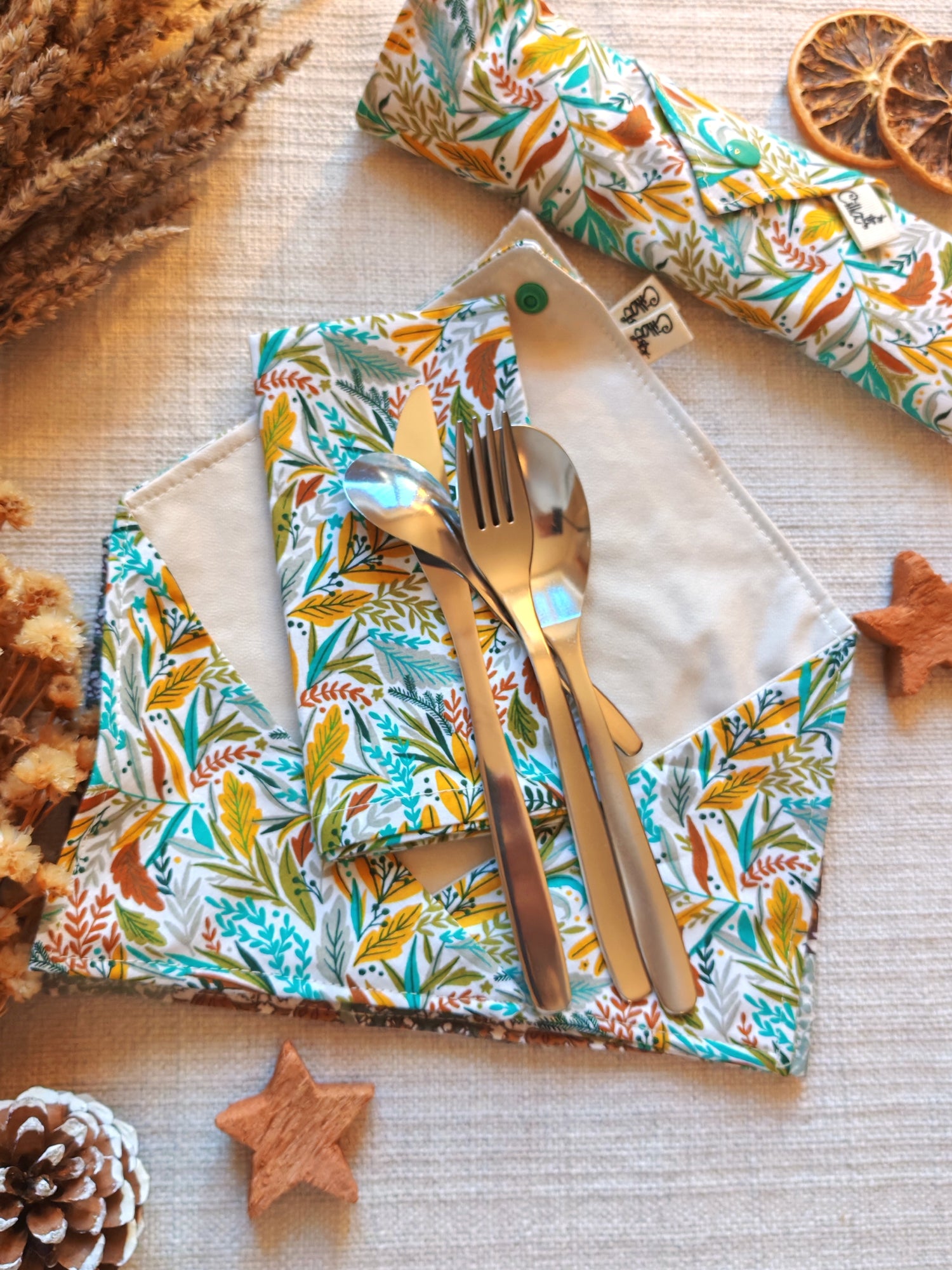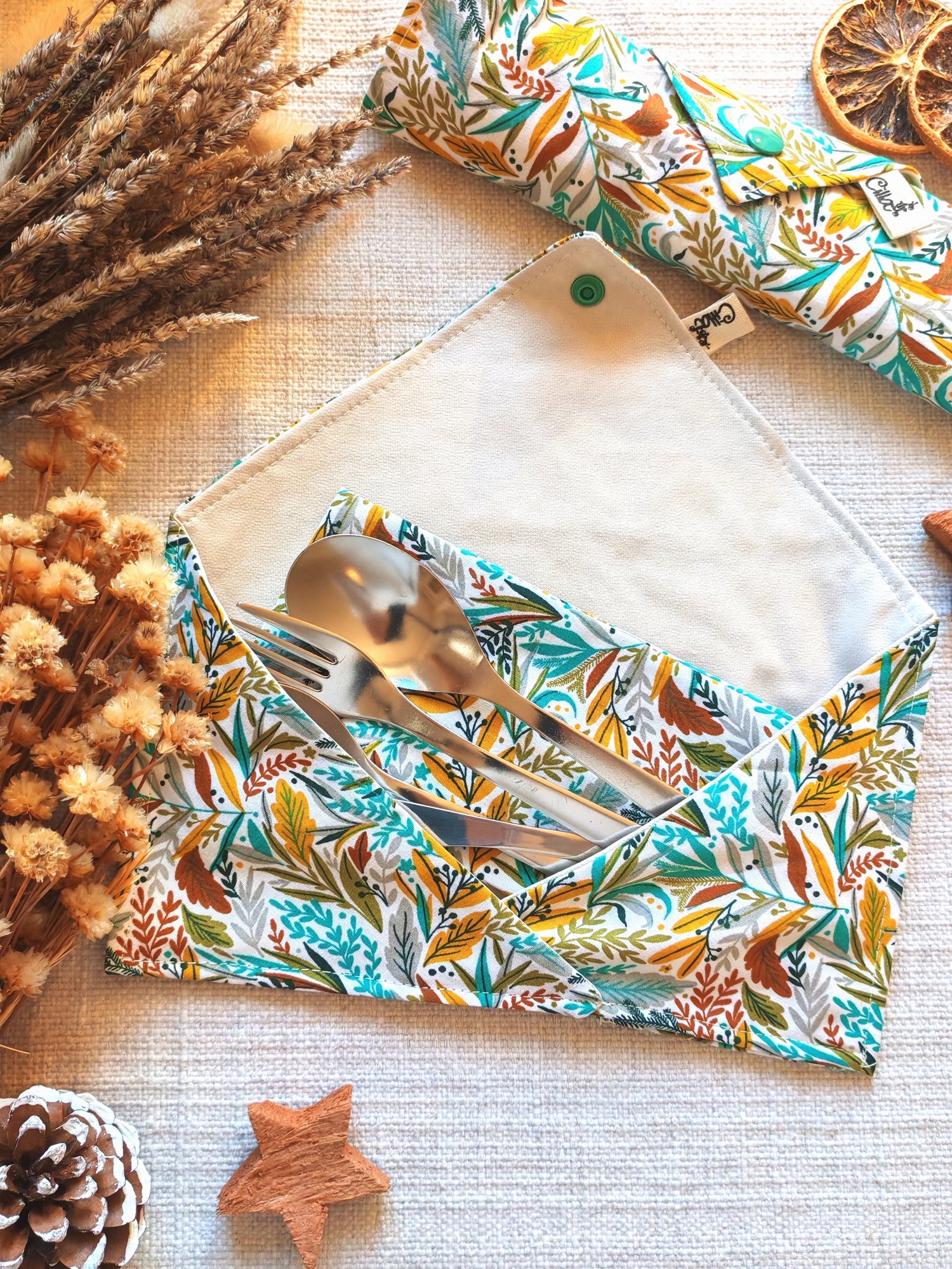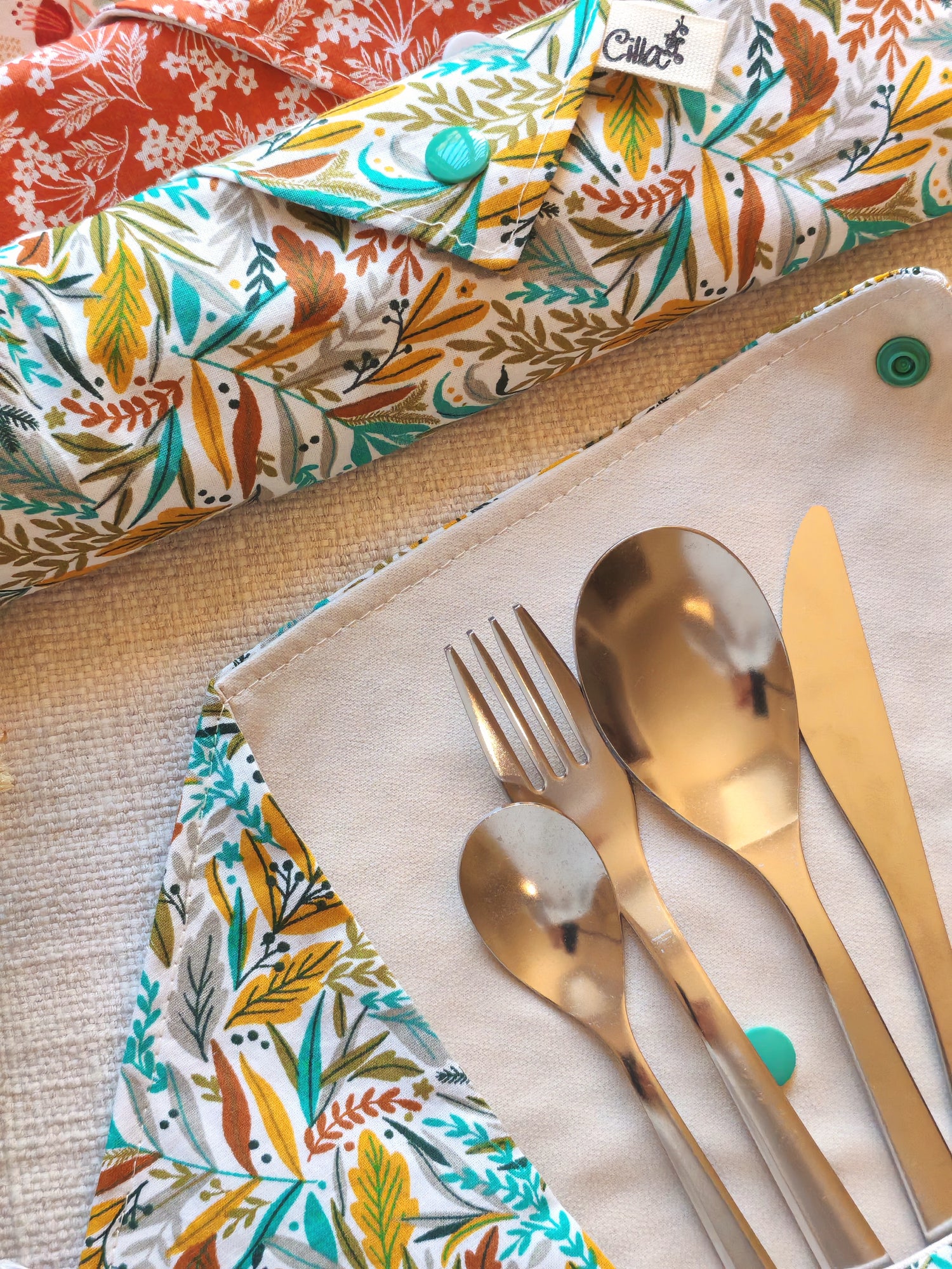 Così è nato questo astuccio porta posate artigianale, cucito a mano in cotone certificato OEKO-TEX, con fodera interna impermeabile e traspirante in PUL: un materiale resistente, facilmente lavabile e perfetto per l’uso quotidiano.
