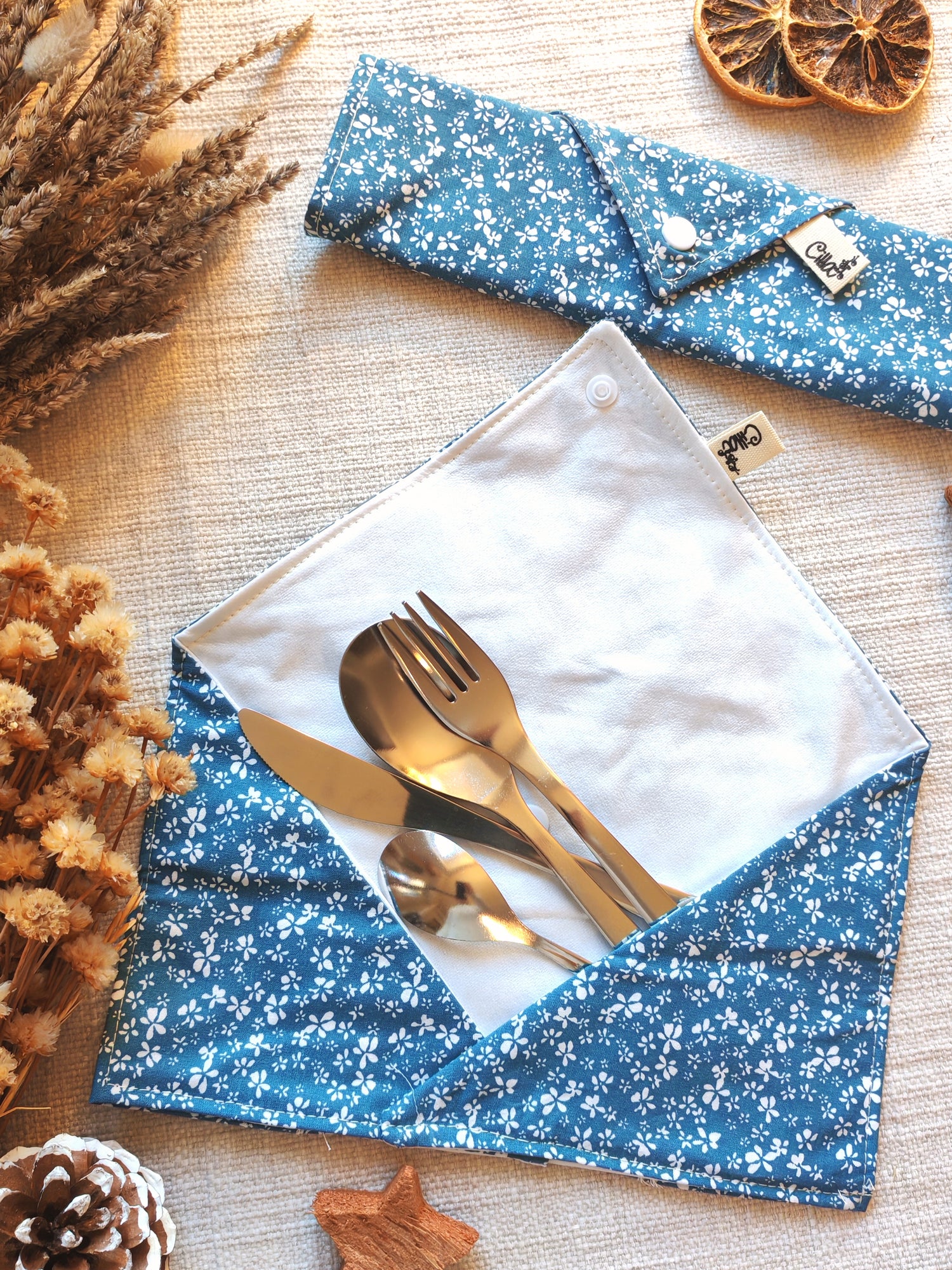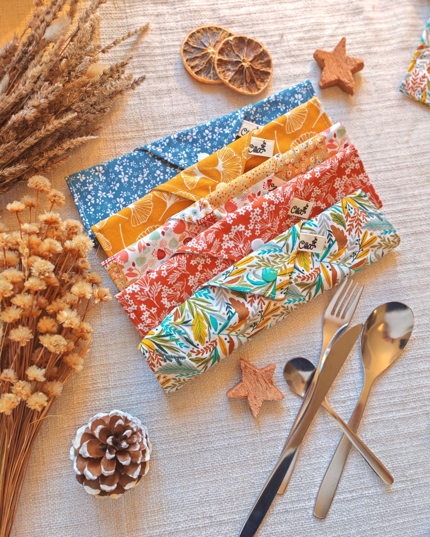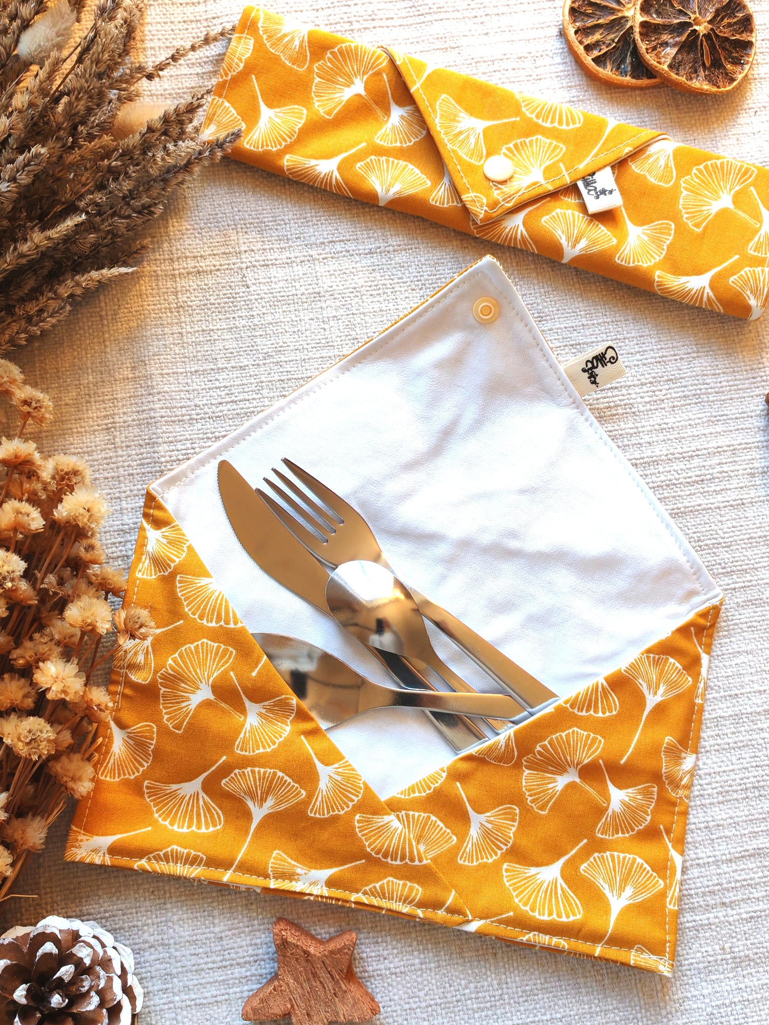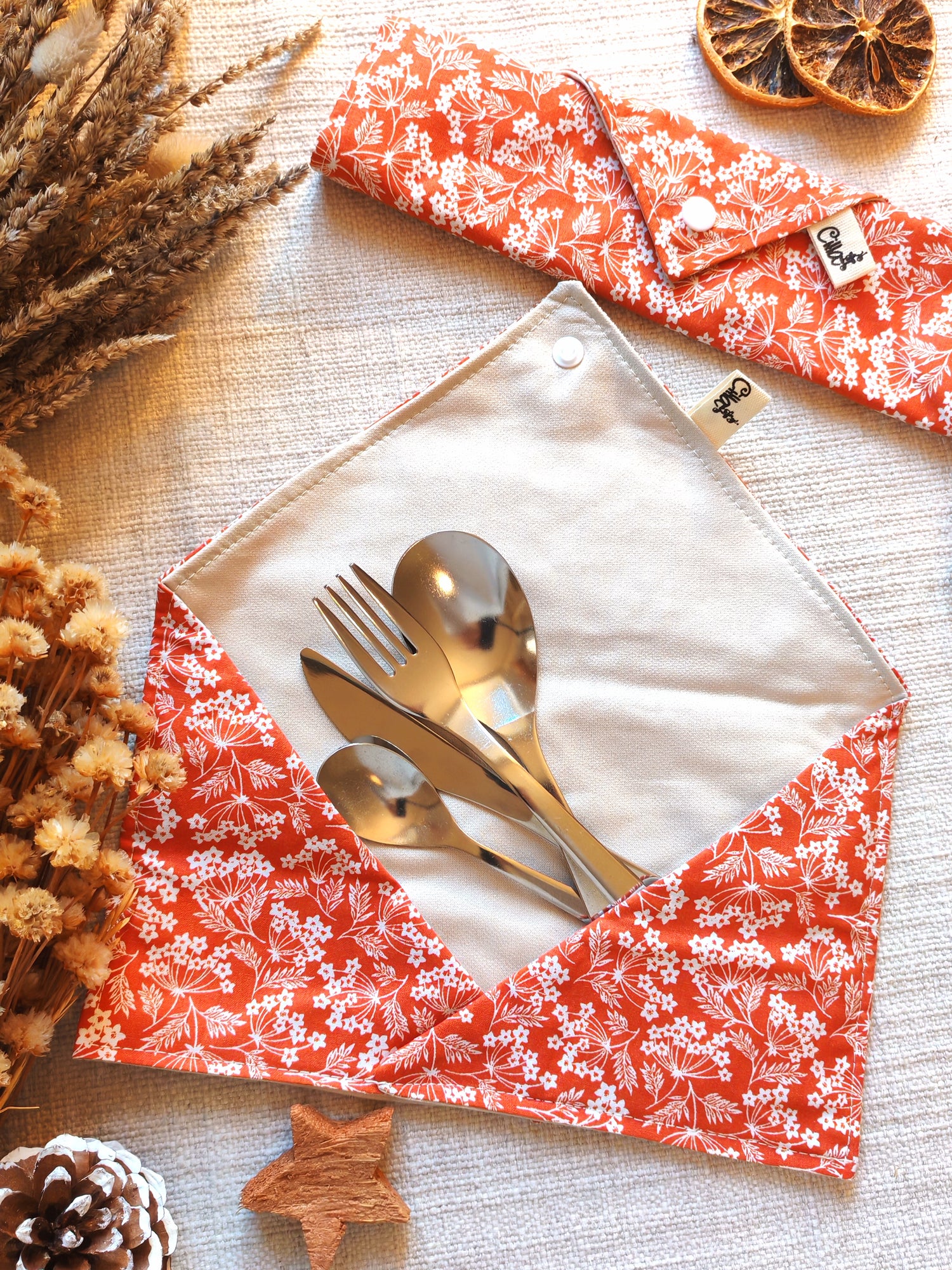 Così è nato questo astuccio porta posate artigianale, cucito a mano in cotone certificato OEKO-TEX, con fodera interna impermeabile e traspirante in PUL: un materiale resistente, facilmente lavabile e perfetto per l’uso quotidiano.