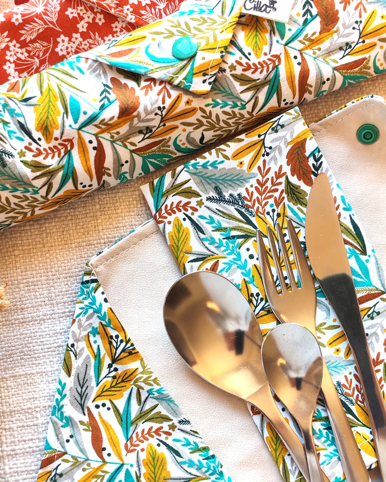 Per un set zero waste completo, puoi abbinarlo alla lunch bag, alle tovagliette e ai tovaglioli in tessuto coordinati.
