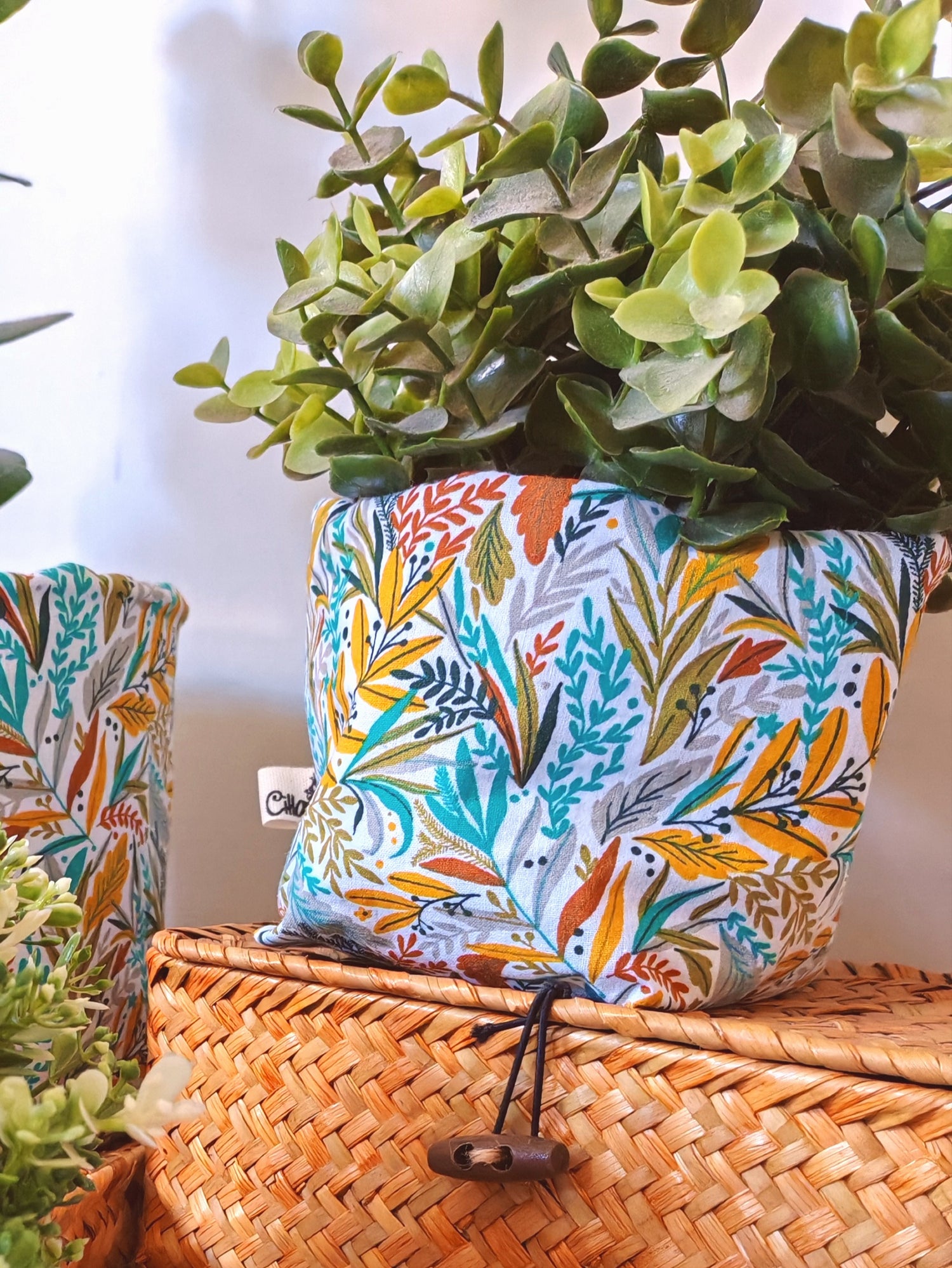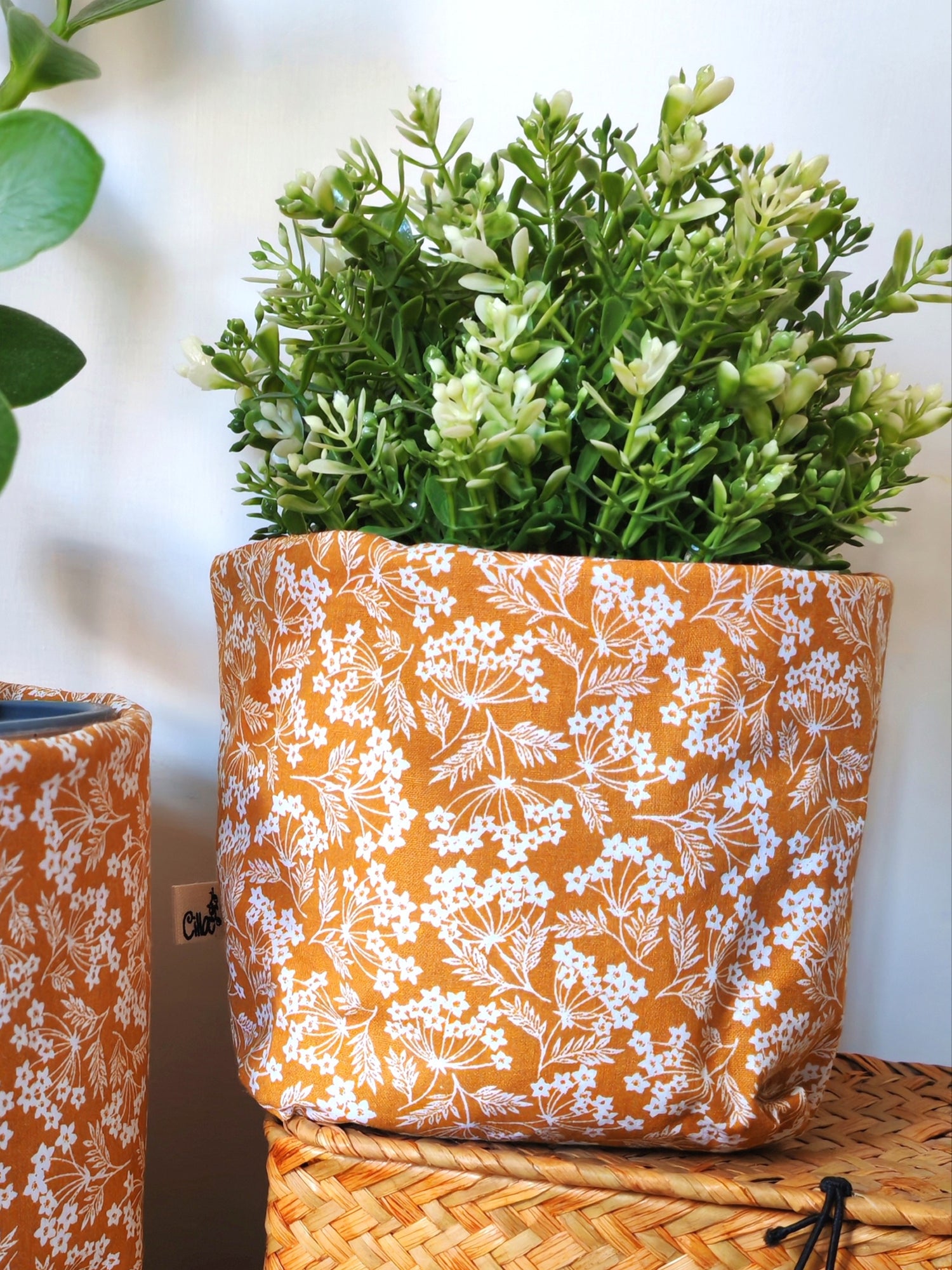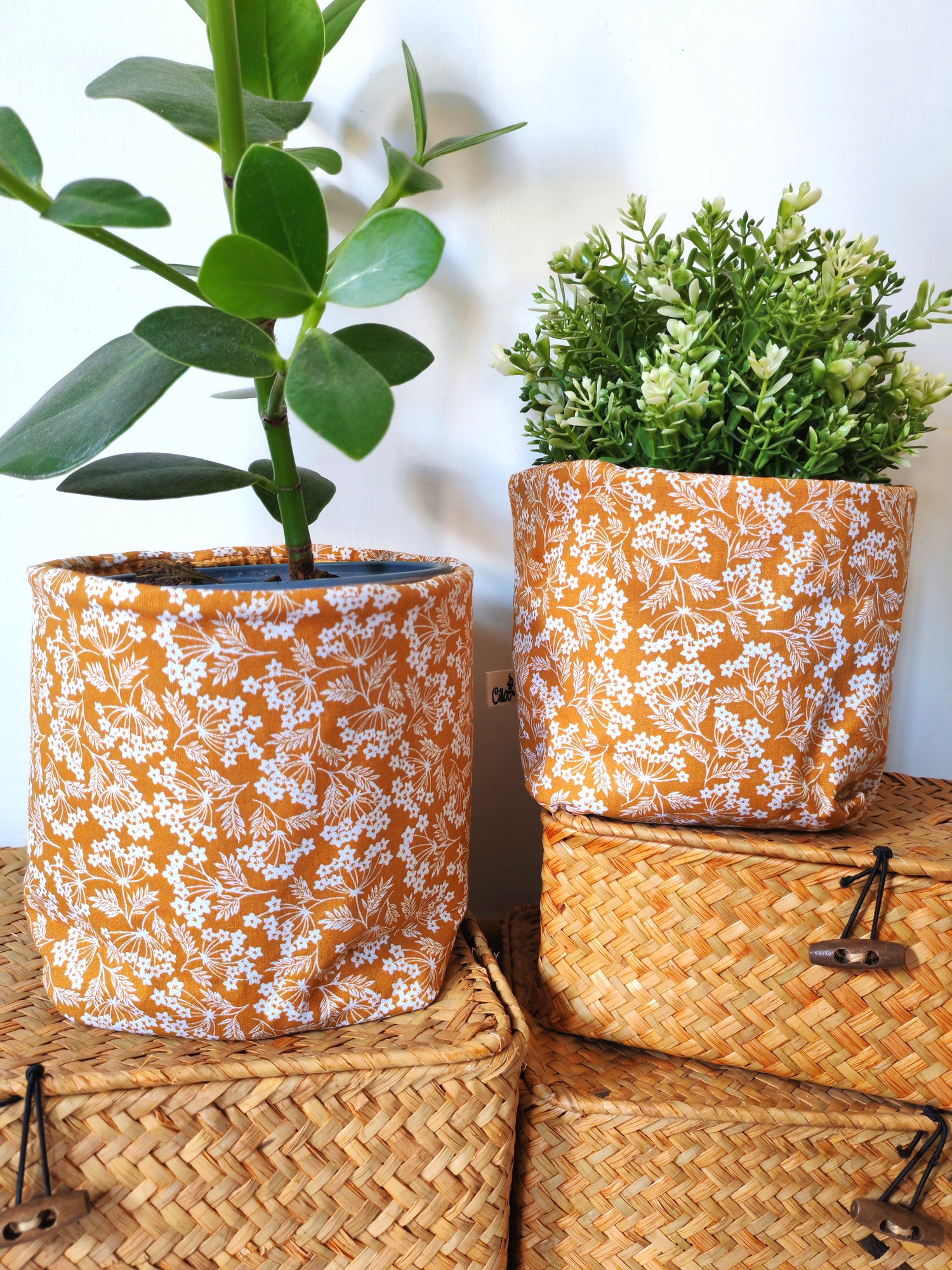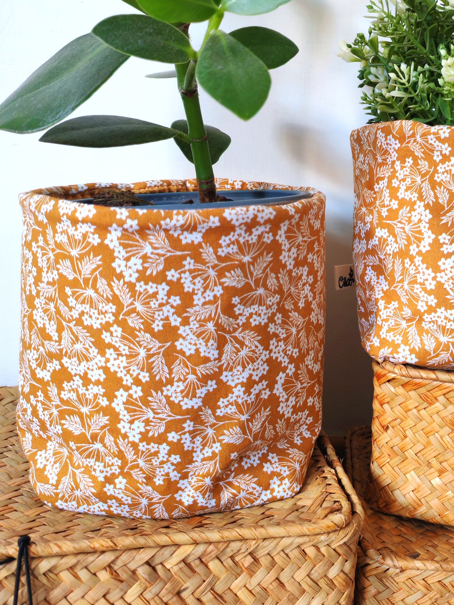 Realizzato a mano in cotone certificato Oeko-Tex, con fodera interna in spugna assorbente che aiuta a mantenere la forma e a proteggere le superfici da eventuali gocce d’acqua, è un coprivaso pratico, lavabile e rispettoso dell’ambiente.