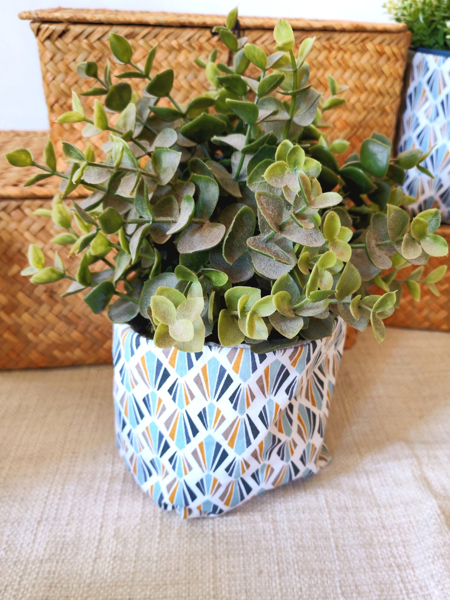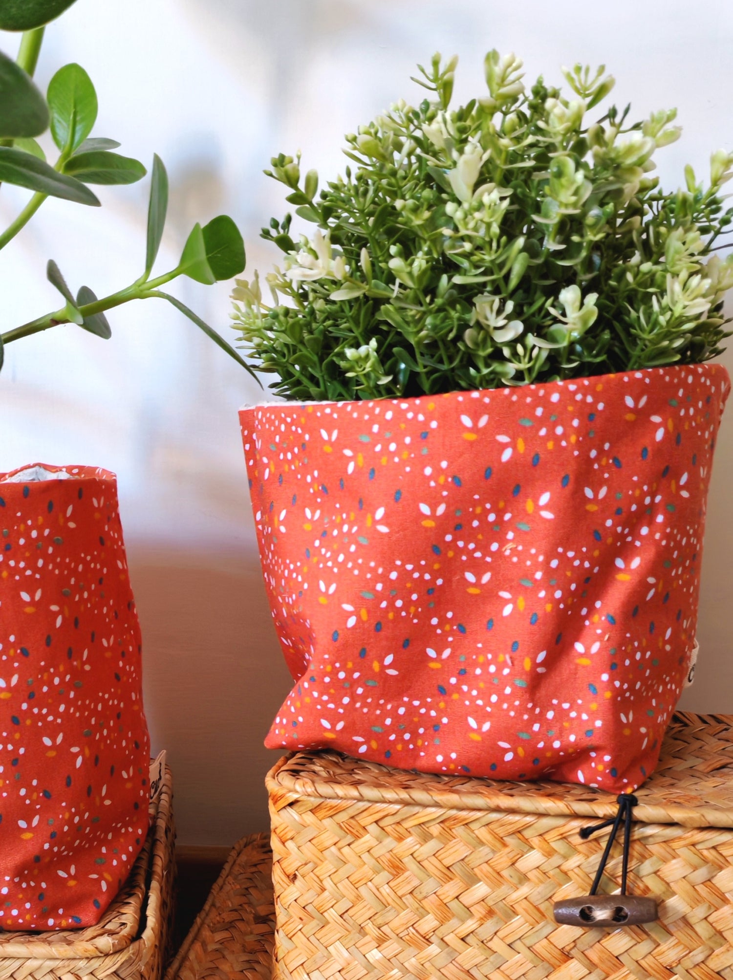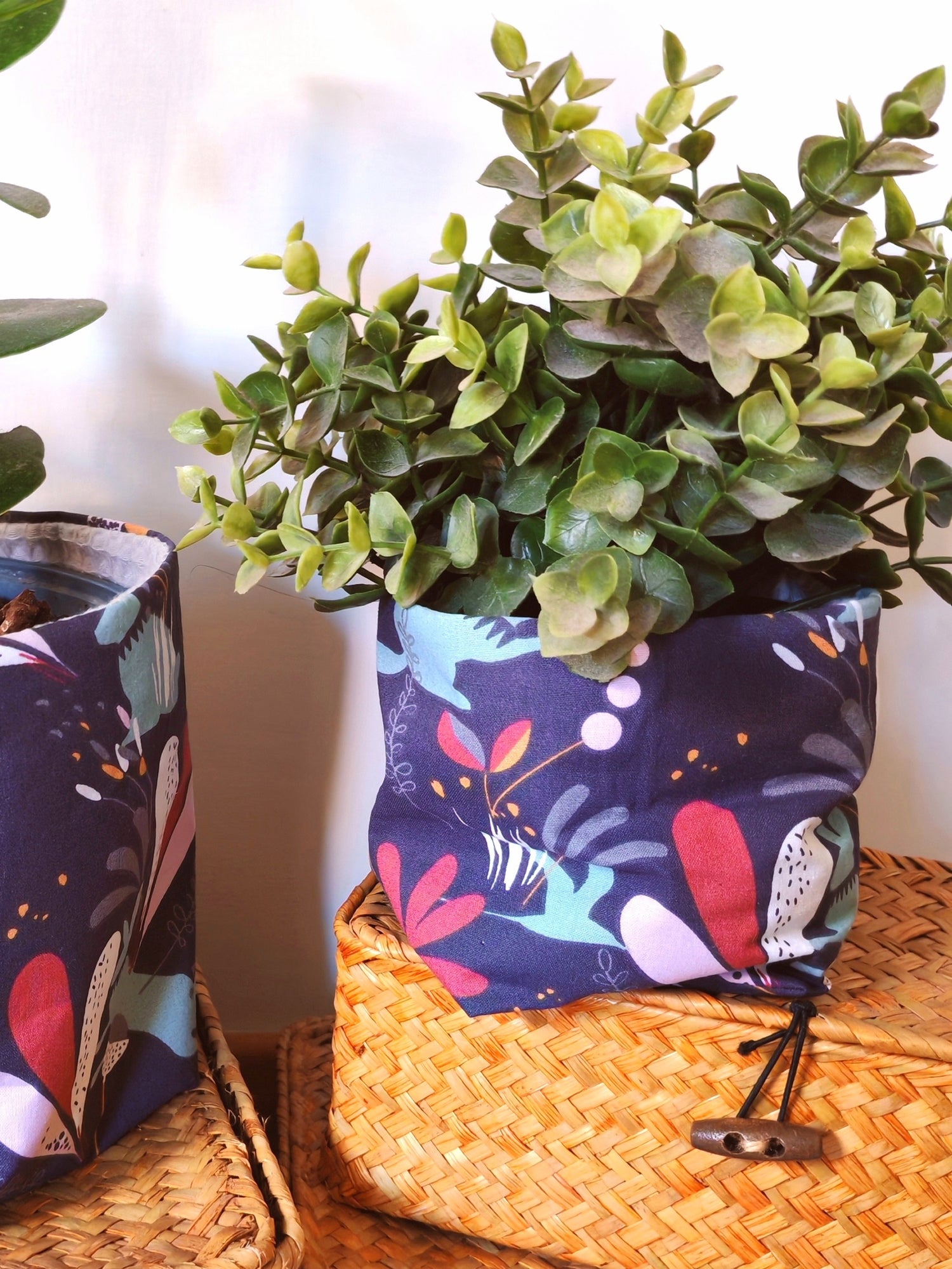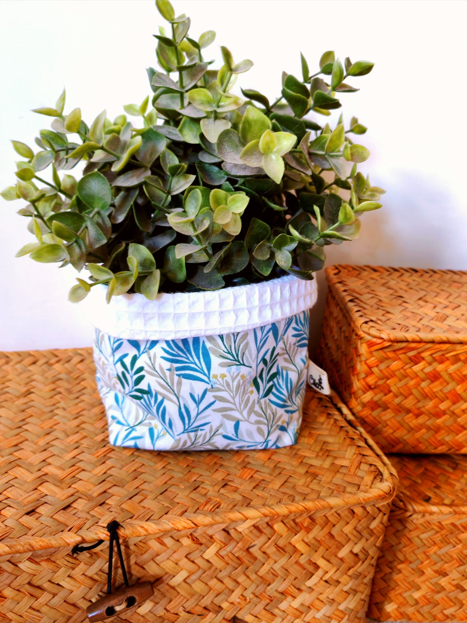 Nasce come porta vaso in tessuto, ideale per ospitare piccole piante d’interno e decorare con gusto spazi come la cucina, il salotto o lo studio.