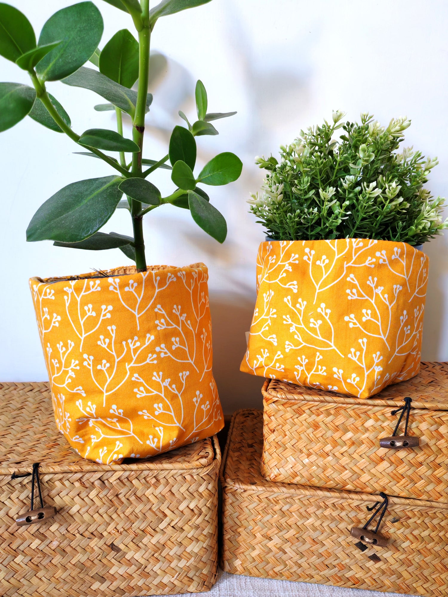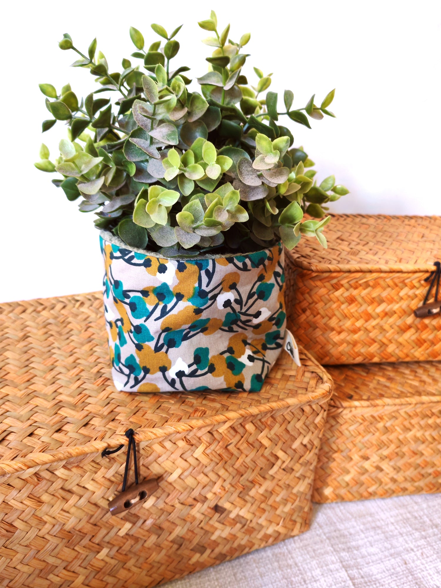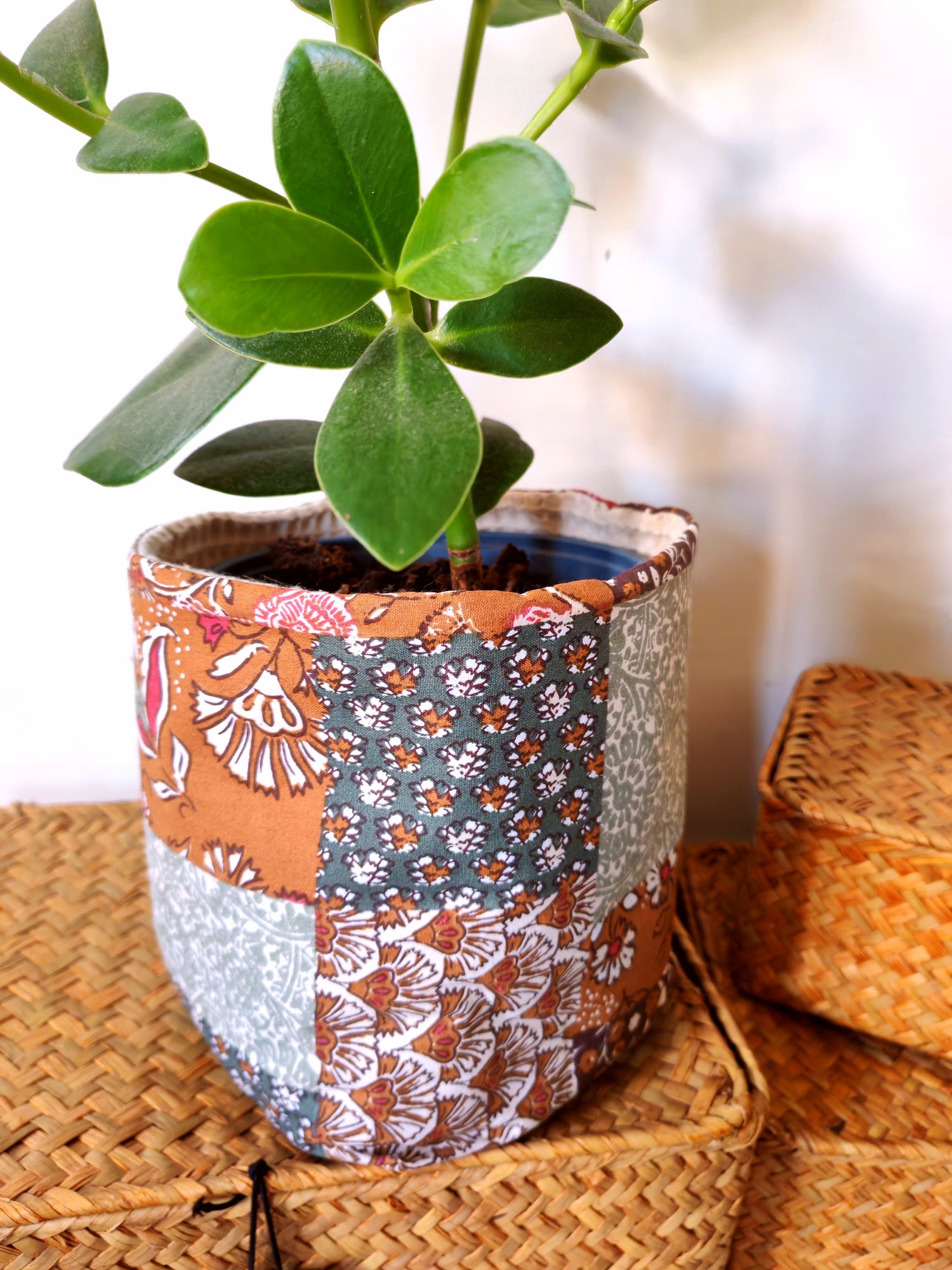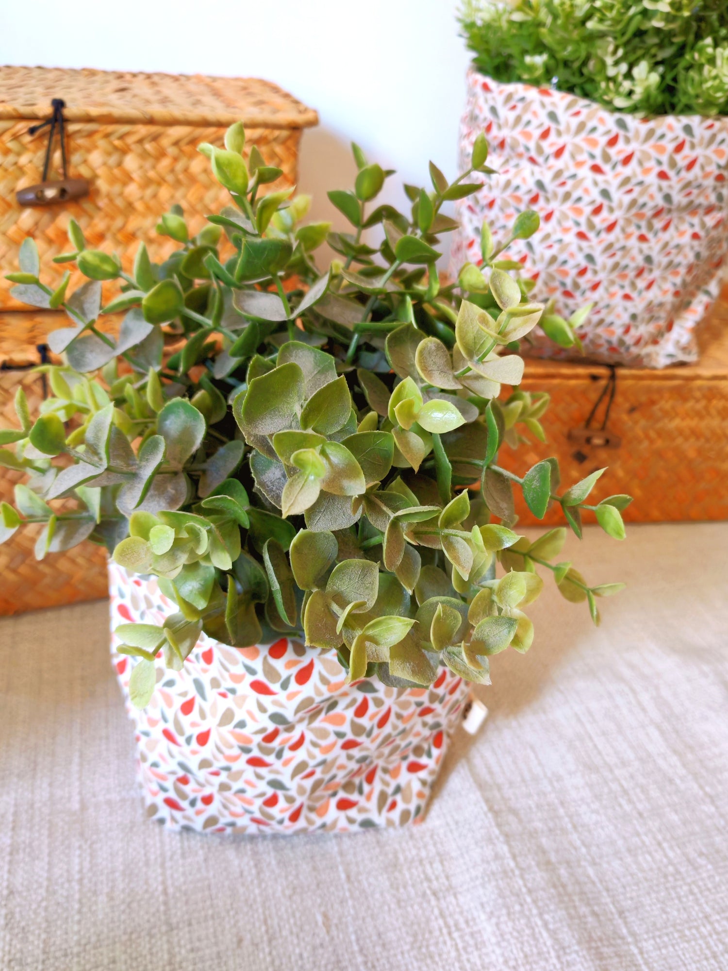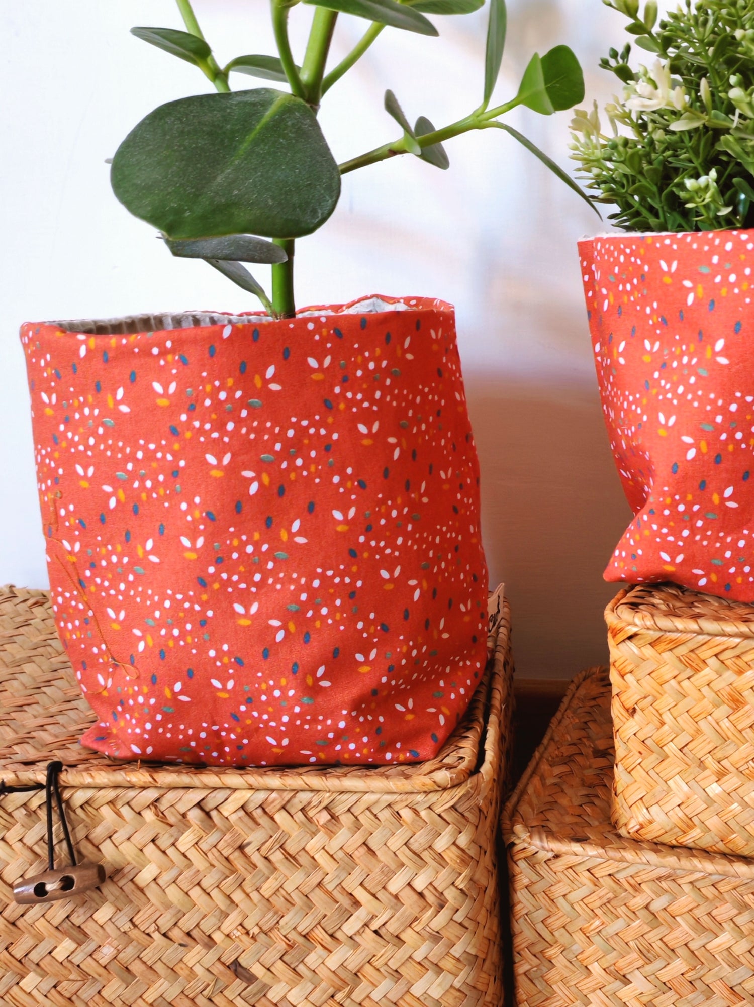 Nasce come porta vaso in tessuto, ideale per ospitare piccole piante d’interno e decorare con gusto spazi come la cucina, il salotto o lo studio.