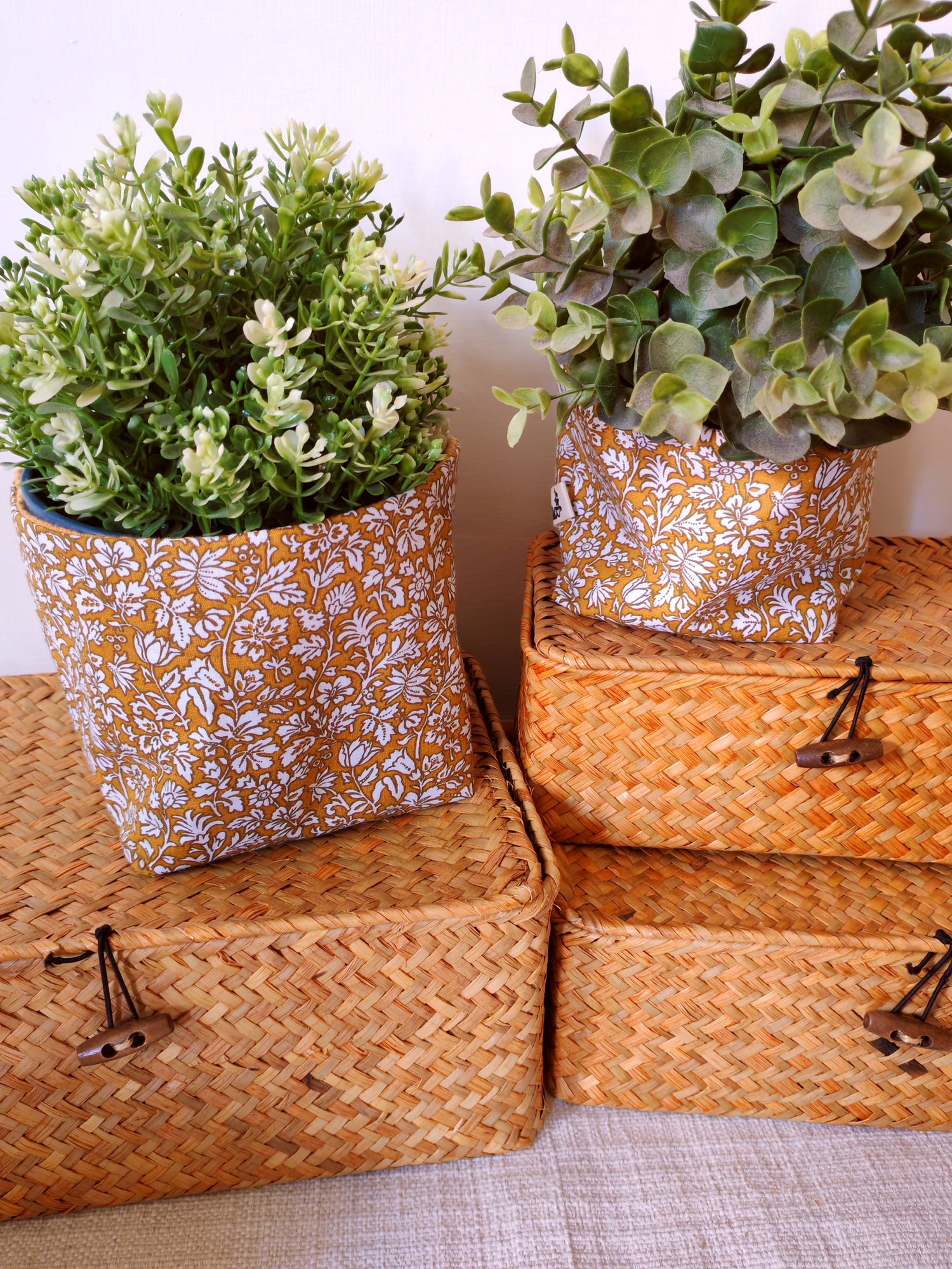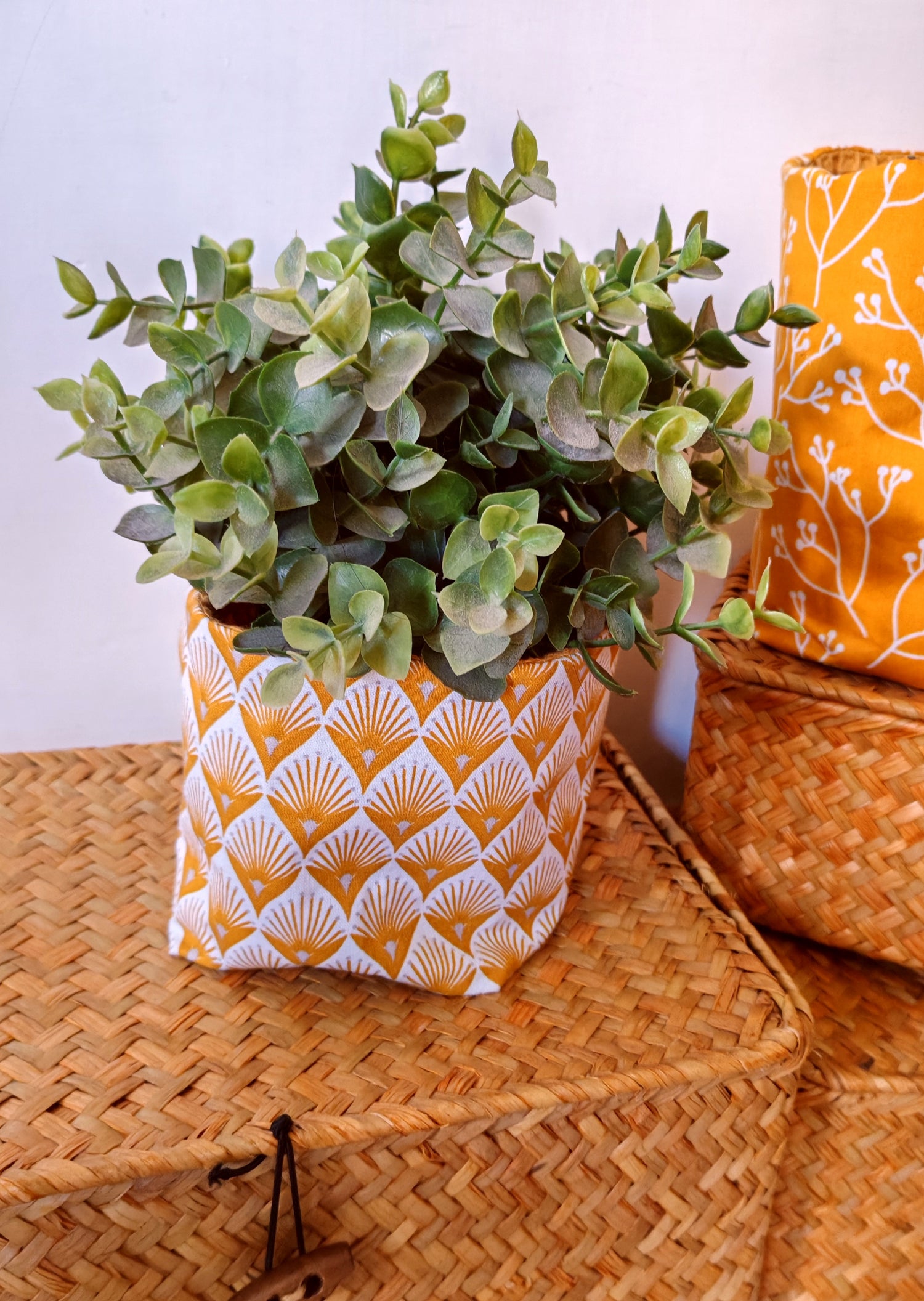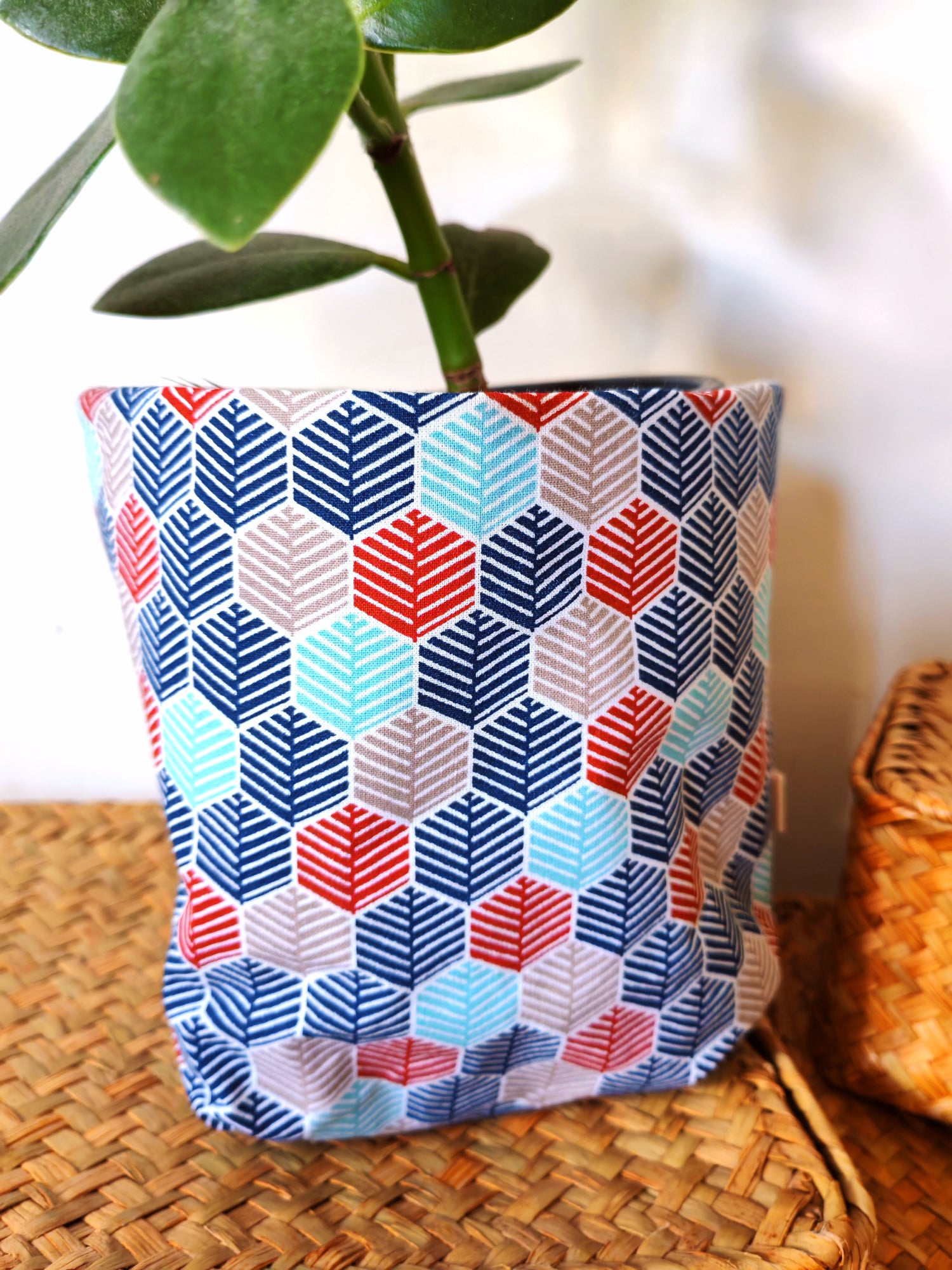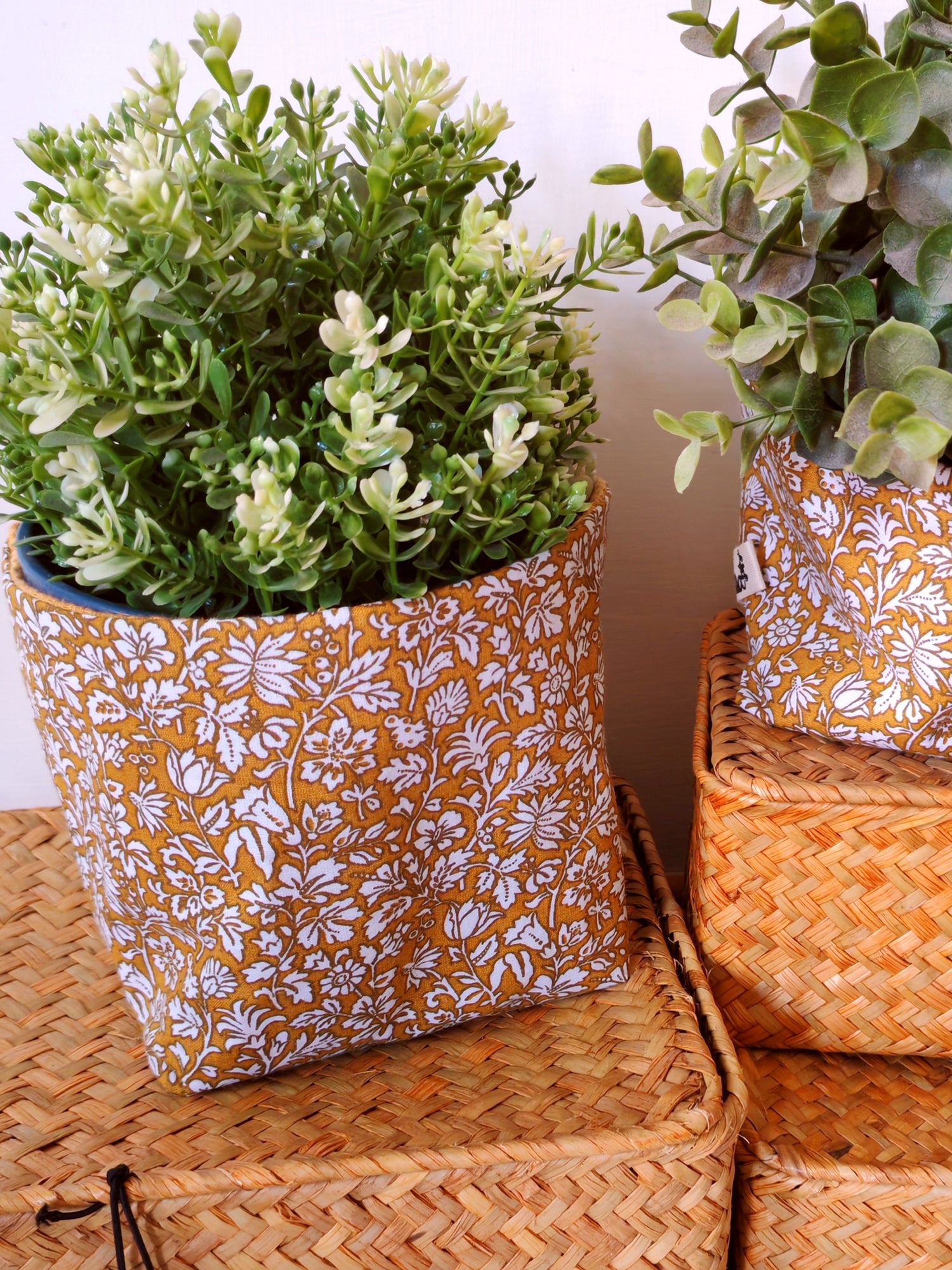 Nasce come porta vaso in tessuto, ideale per ospitare piccole piante d’interno e decorare con gusto spazi come la cucina, il salotto o lo studio.