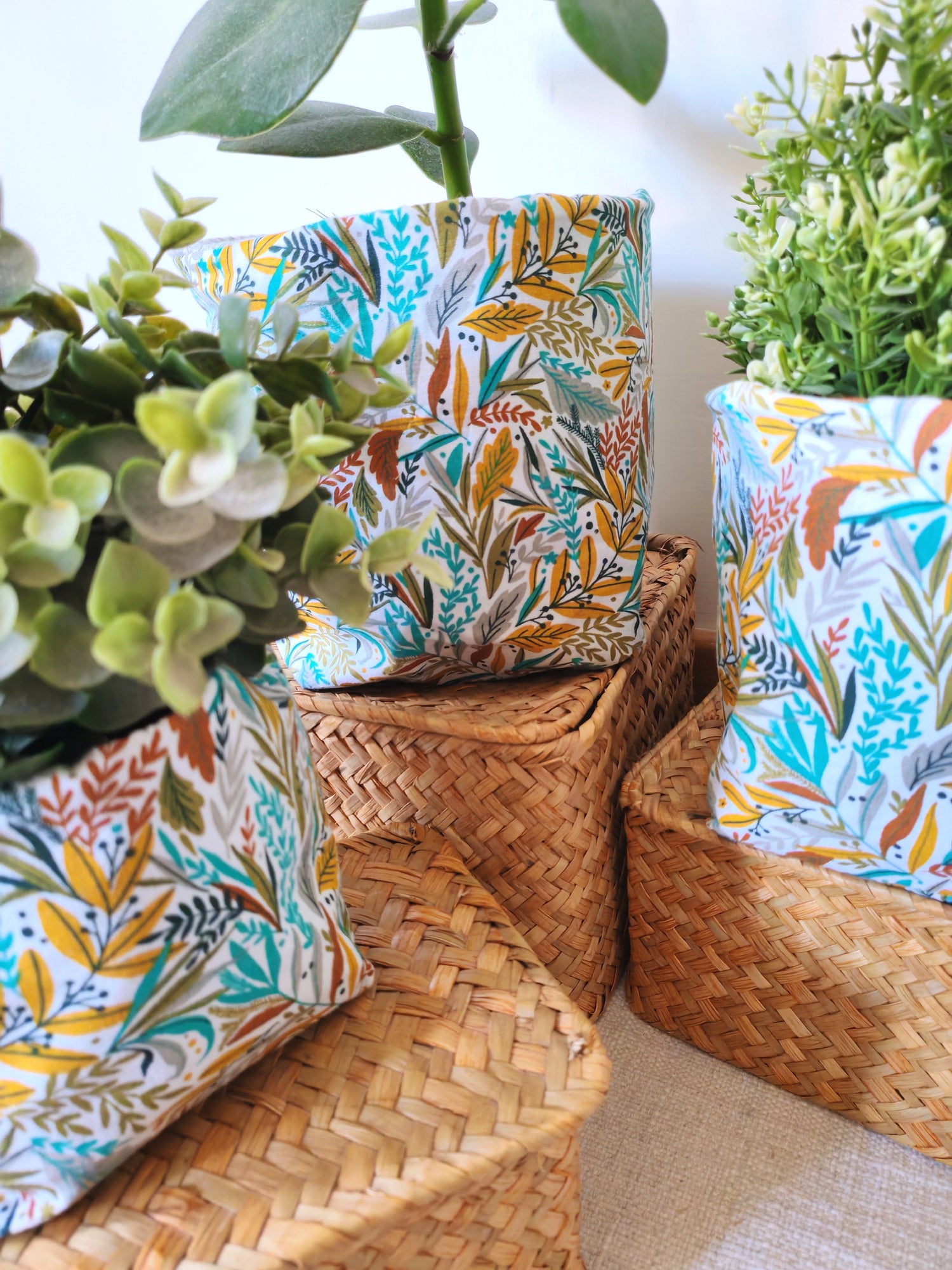 Un cestino artigianale che unisce bellezza naturale e praticità quotidiana, pensato per portare ordine e colore in ogni stanza della casa.