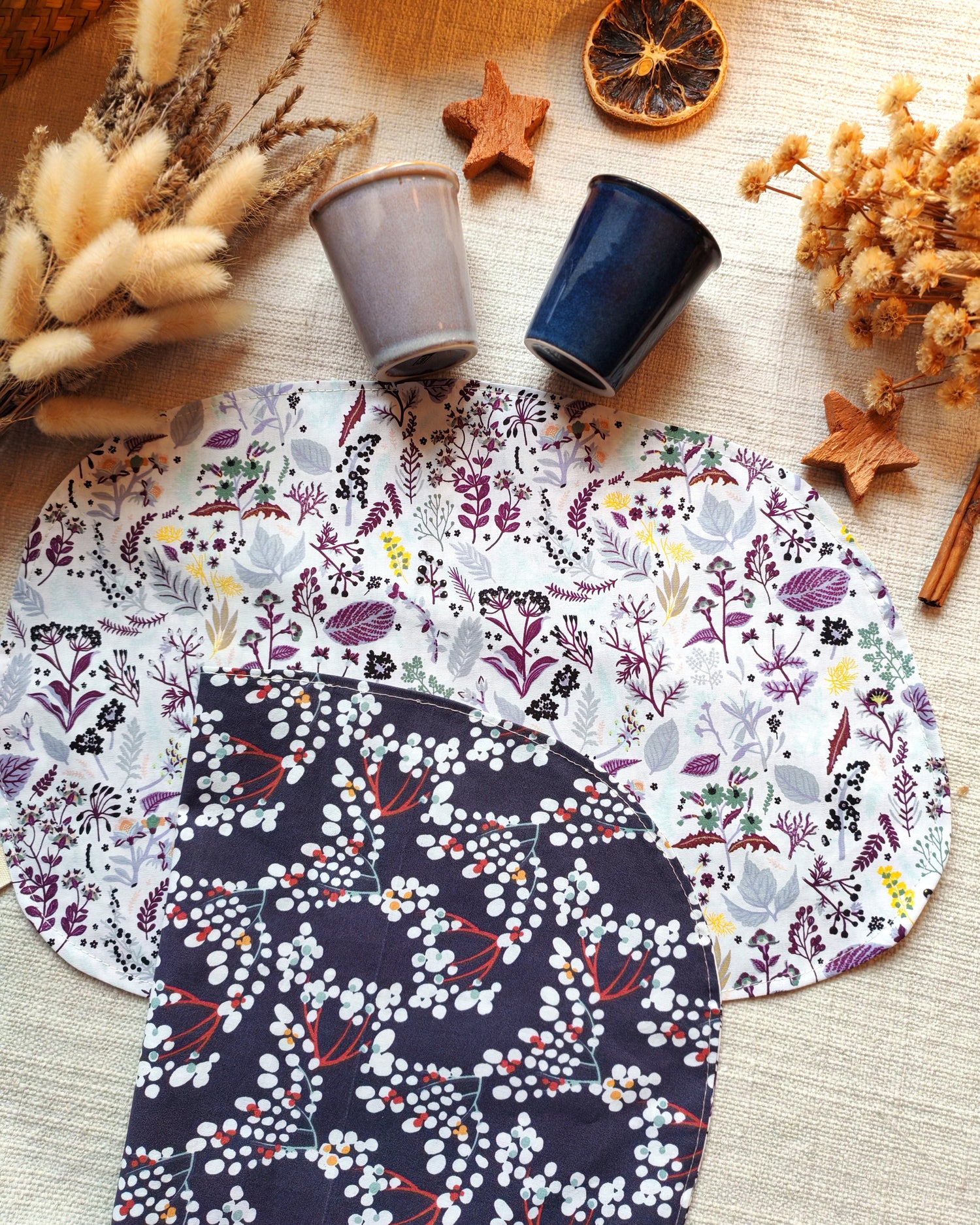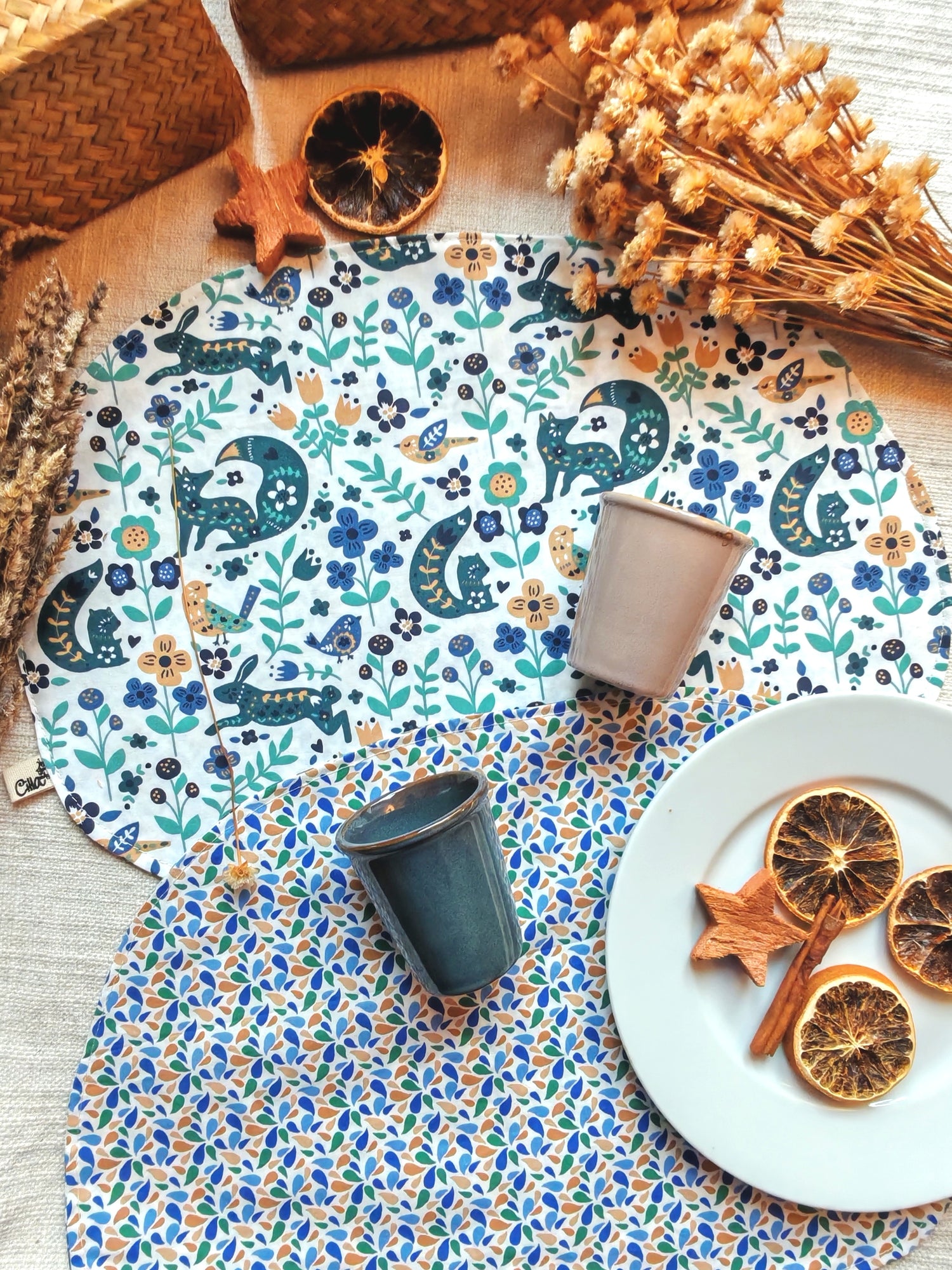 - 2 tovagliette per la colazione con fantasia double face: una fatasia diversa per ogni lato della tovaglietta per cambiare stile alla tavola. Si possono usare anche come centrotavola