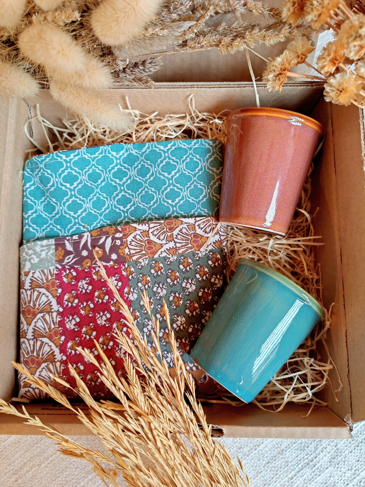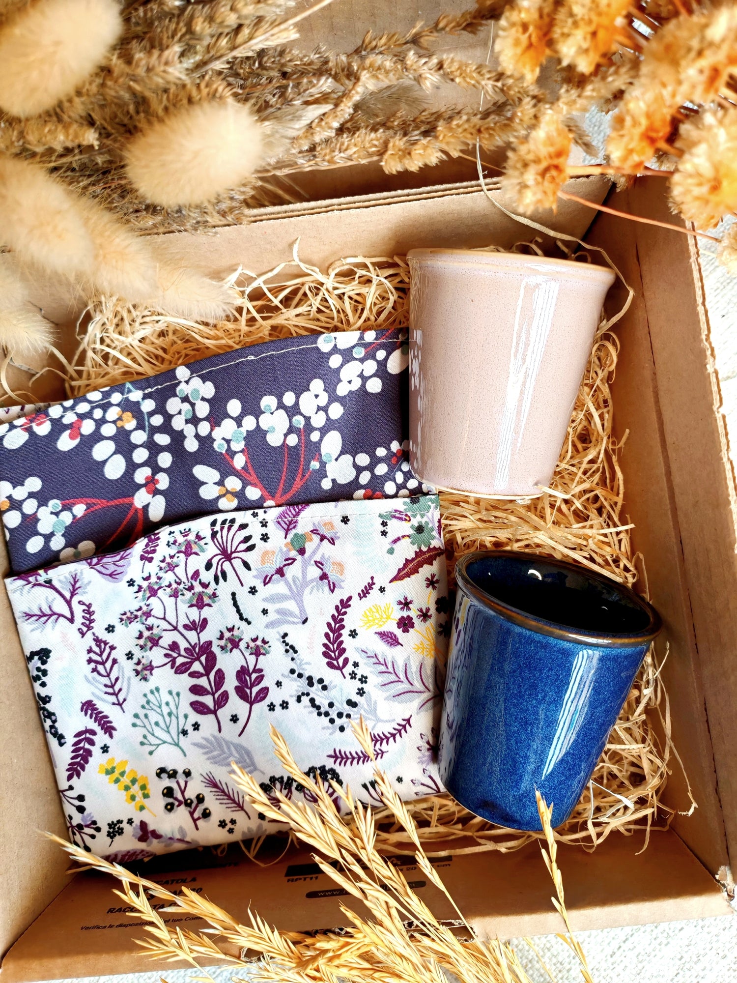 I prodotti sono inseriti in una box regalo decorata a mano con graziosi fiocchetti e mazzetti di piante selvatiche raccolte ed essiccate con amore: una vera coccola di qualità, cura nei dettagli e amore per l’ambiente per chi le riceverà.