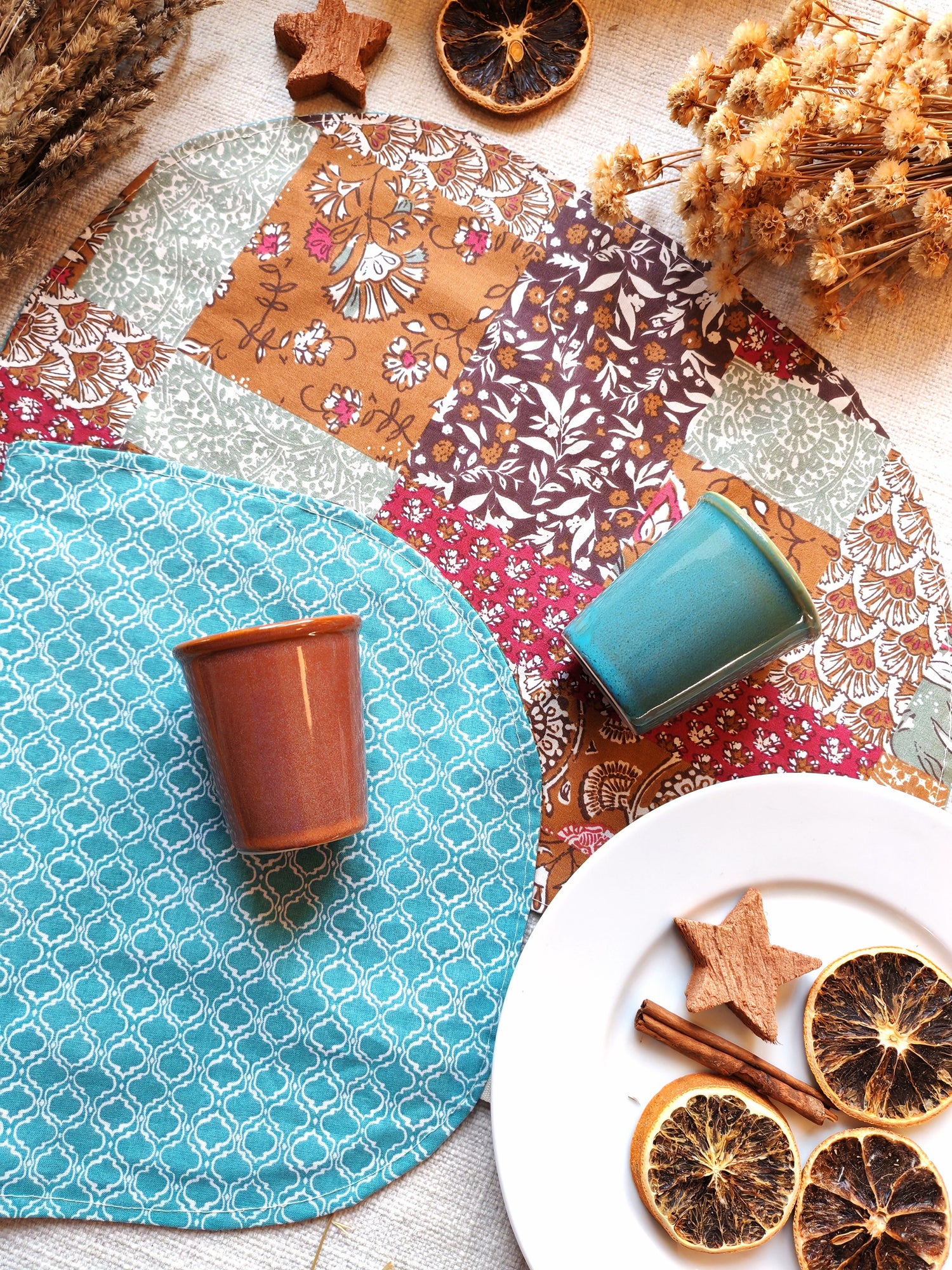 - 2 tazzine da caffè in ceramica (i colori sono abbinati alle tovagliette). Le tazzine possono essere usate anche come piccolo vasetto per i fiori.
