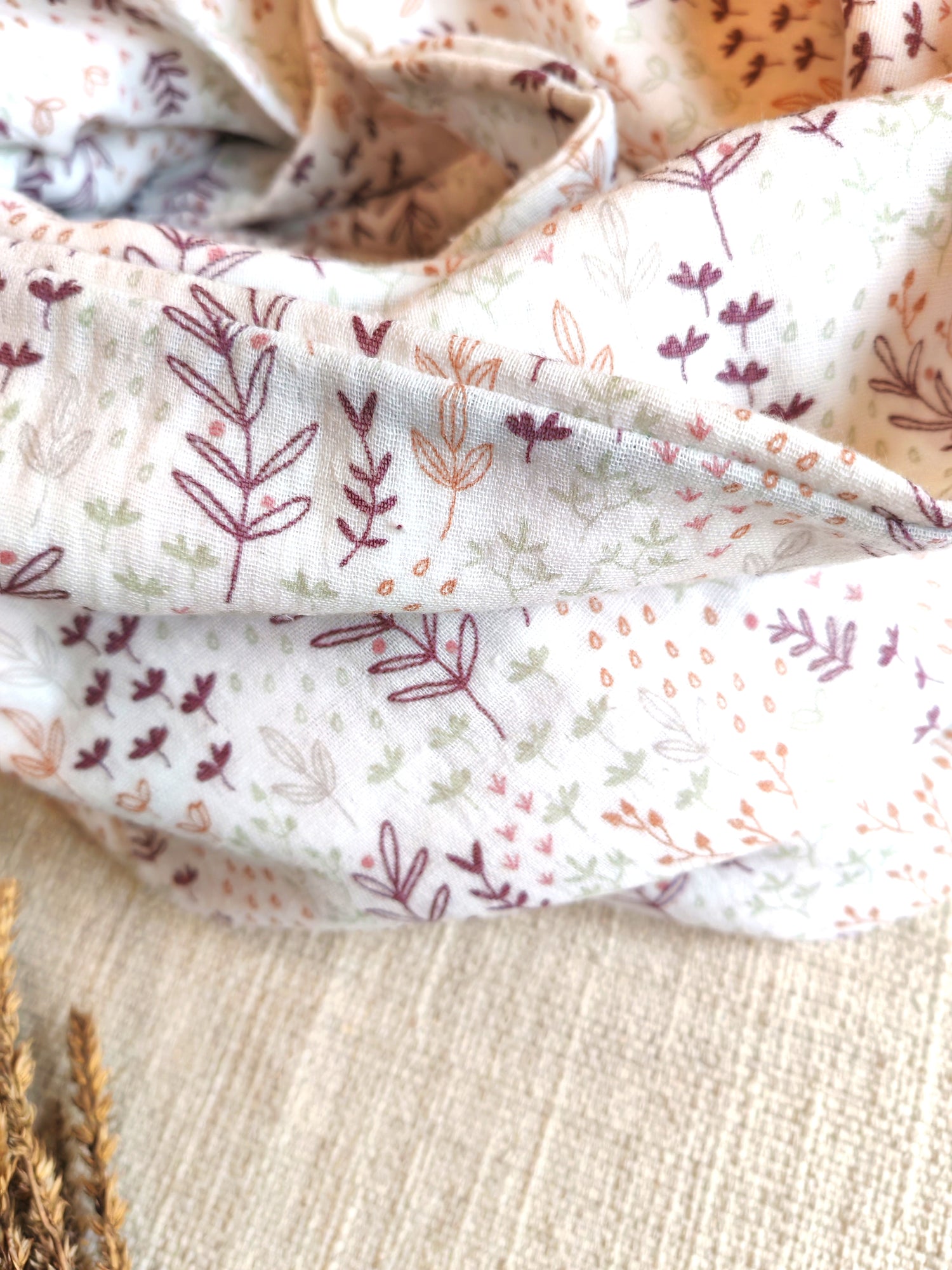 Le sciarpe sono realizzata in soffice mussola oppure in cotone Top Quality entrambe biologiche certificate GOTS.
