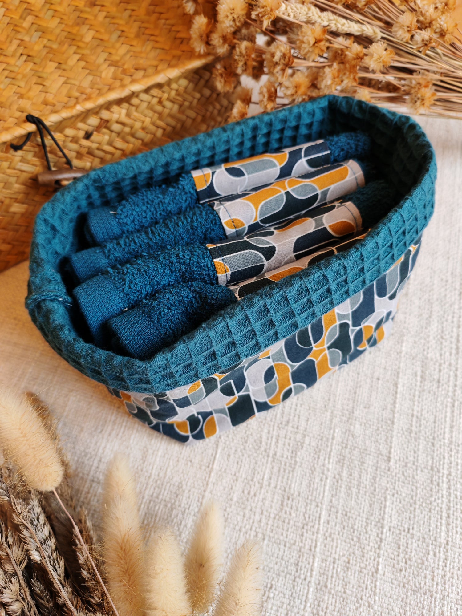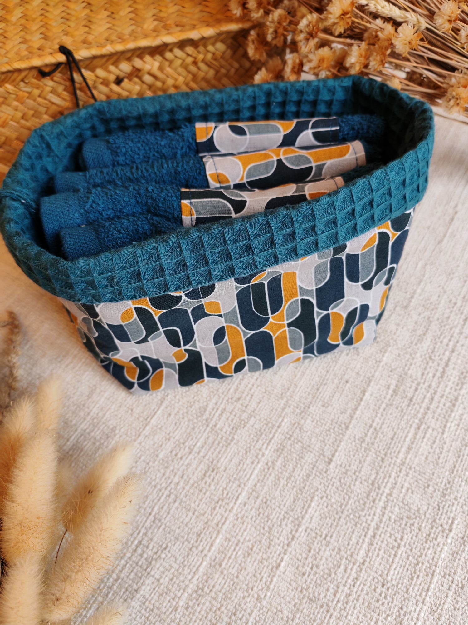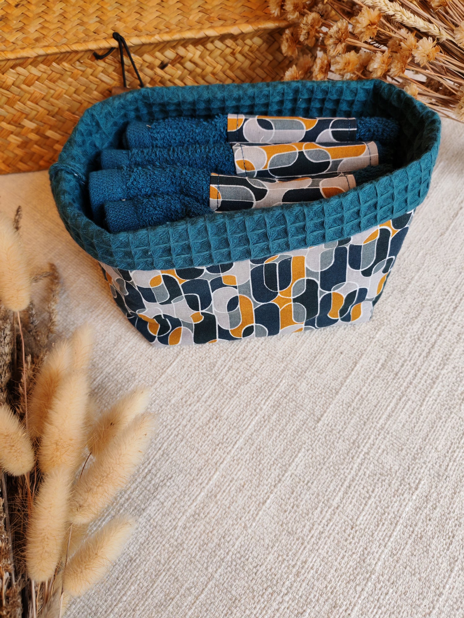 - 1 cestino in tessuto di spugna a nido d’ape e cotone, pratico e versatile per mantenere tutto in ordine.